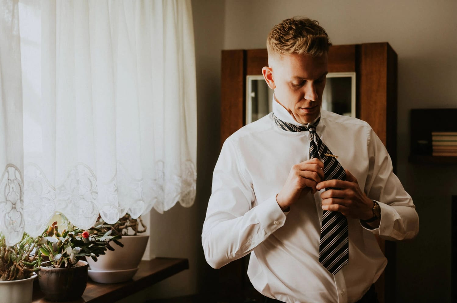 Przygotowania pana młodego w domu