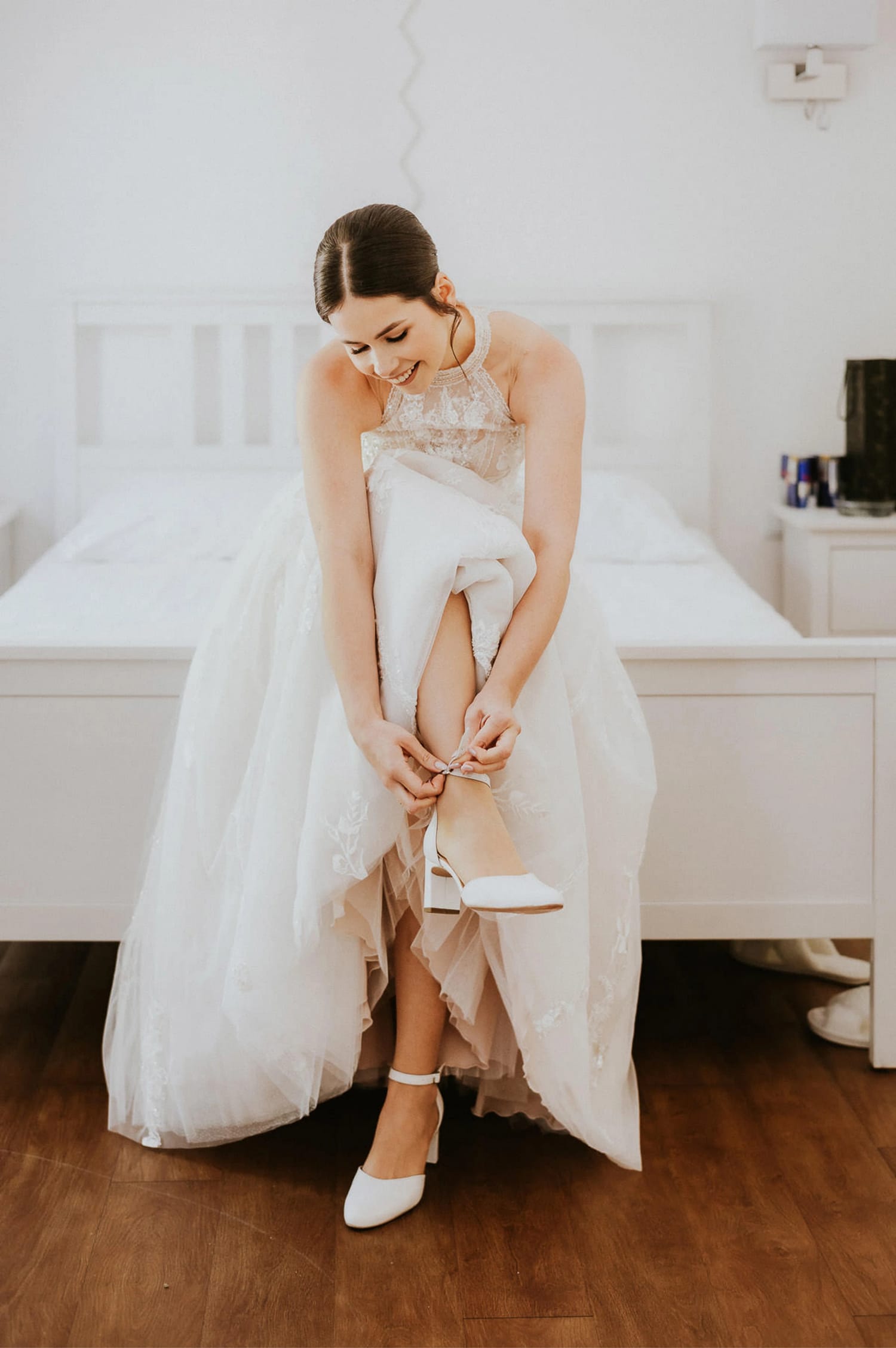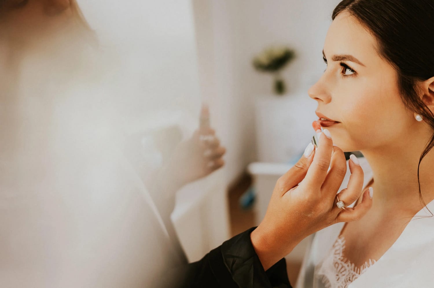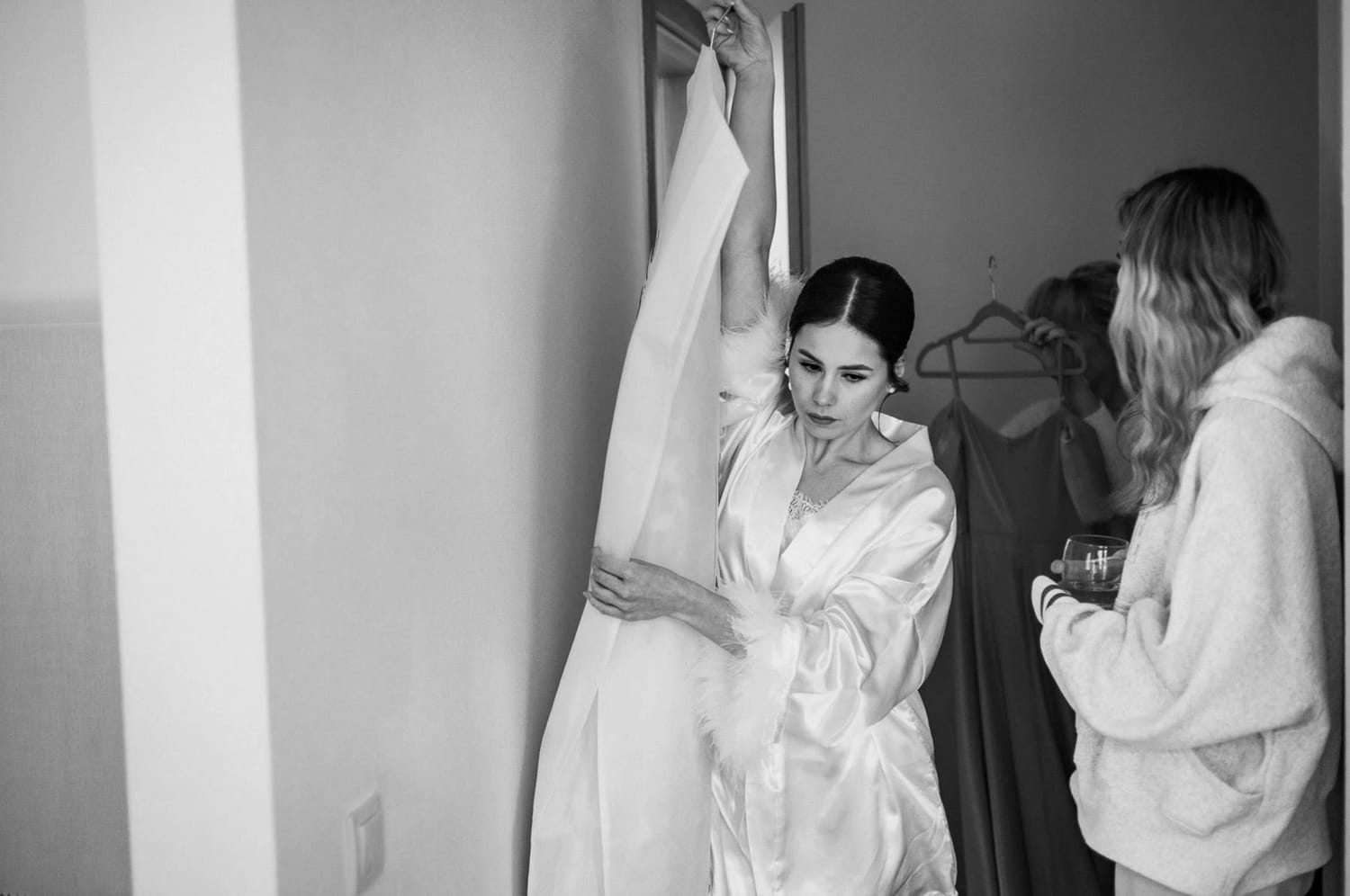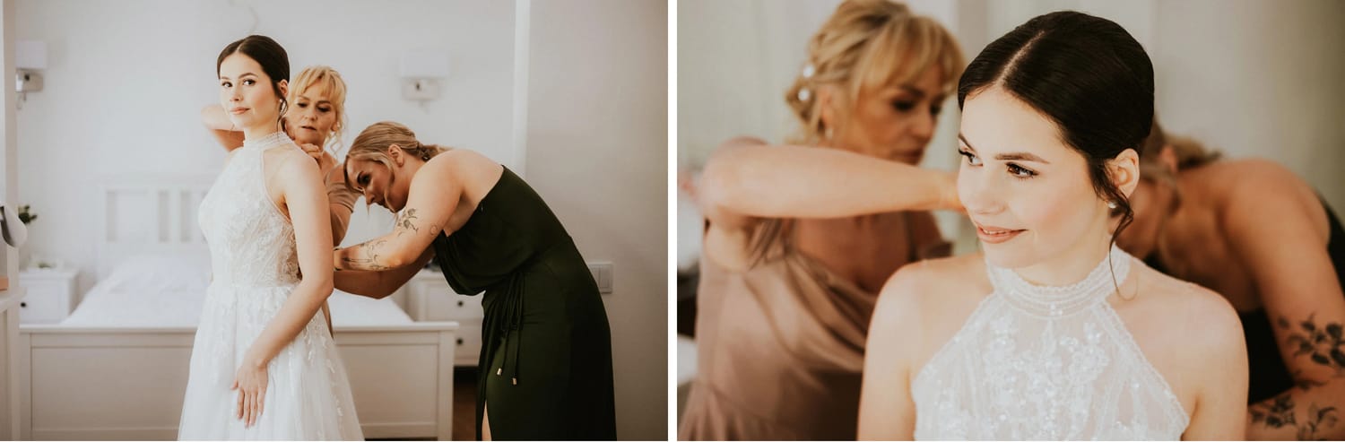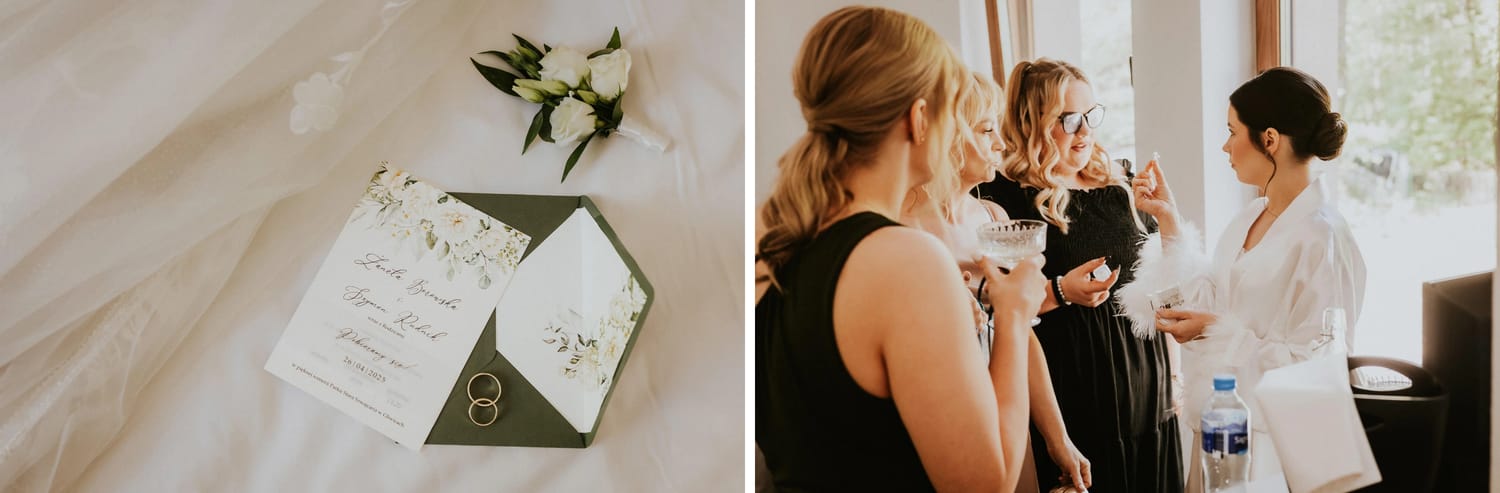 Panna młoda przygotowywała się w pokoju należącym do restauracji. To jeden z tych detali organizacyjnych, które robią ogromną różnicę, choć nikt o tym nie pisze w checklistach.