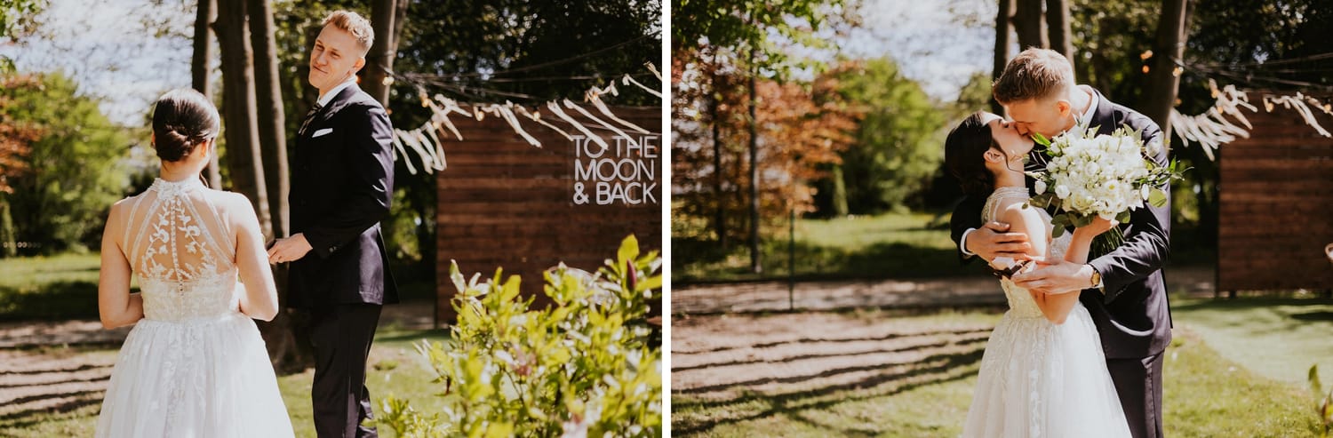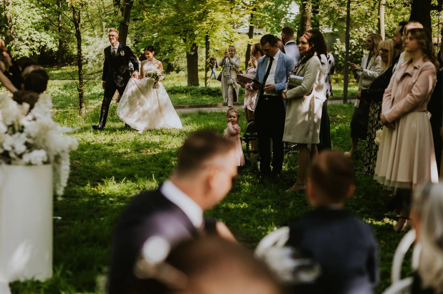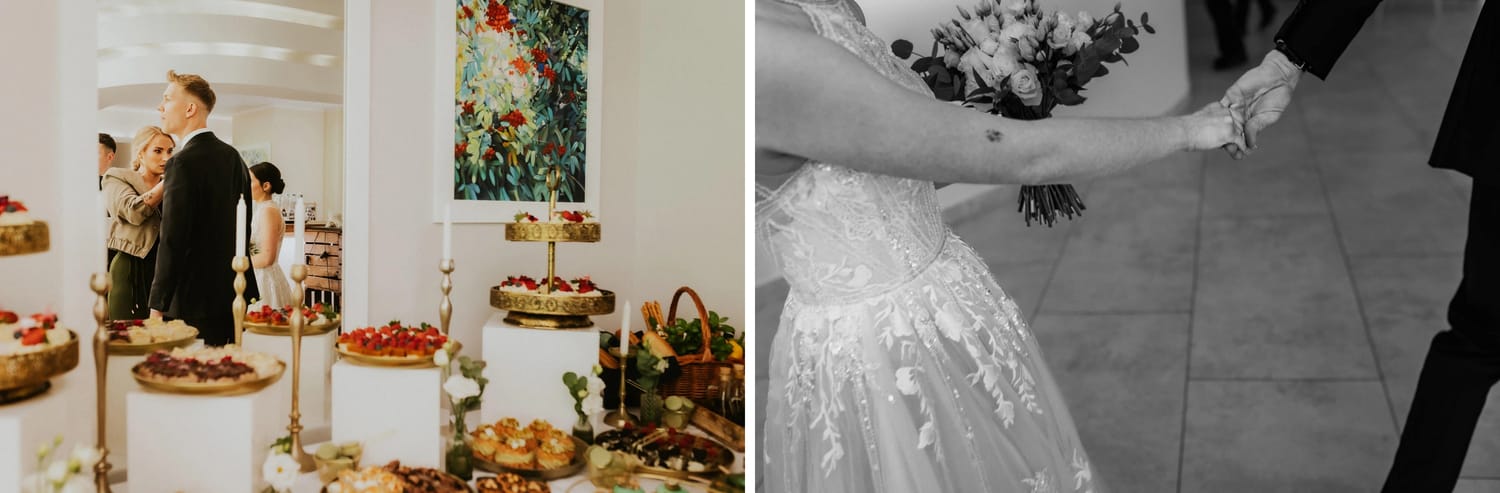 W tym dniu wszystko było blisko siebie: dom, przygotowania na miejscu, ceremonia w parku i sala obok. Dzięki temu nie musieliśmy walczyć o czas. A kiedy nie walczysz o czas, możesz być obecny. I para może być obecna.
