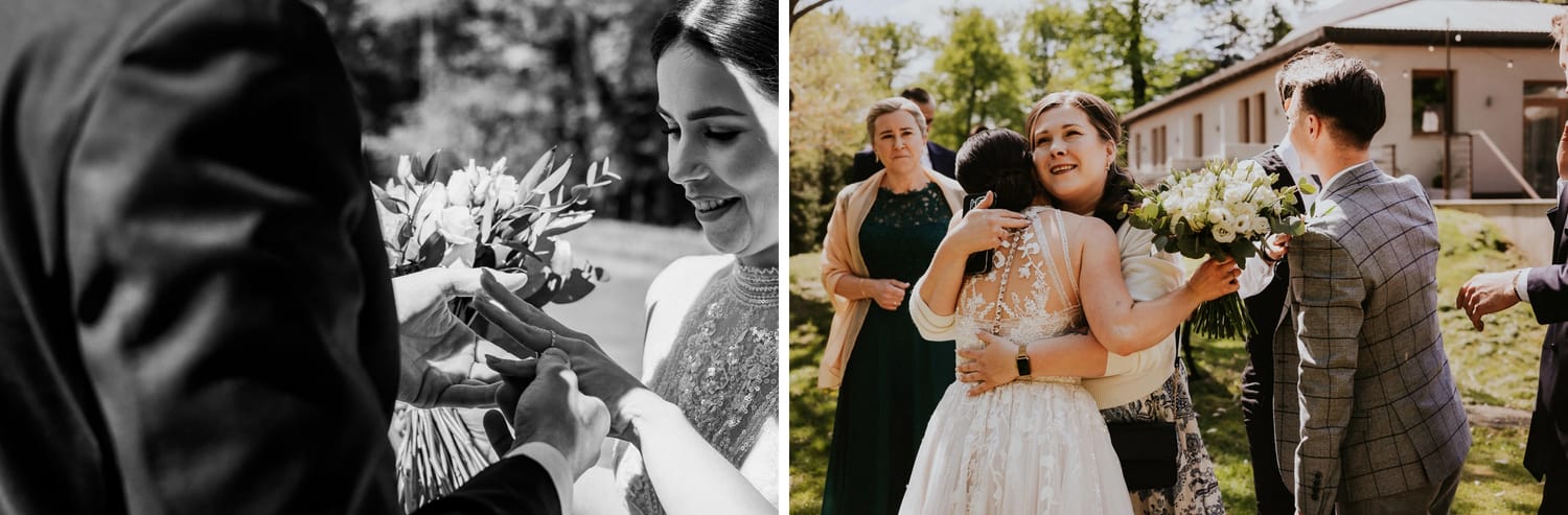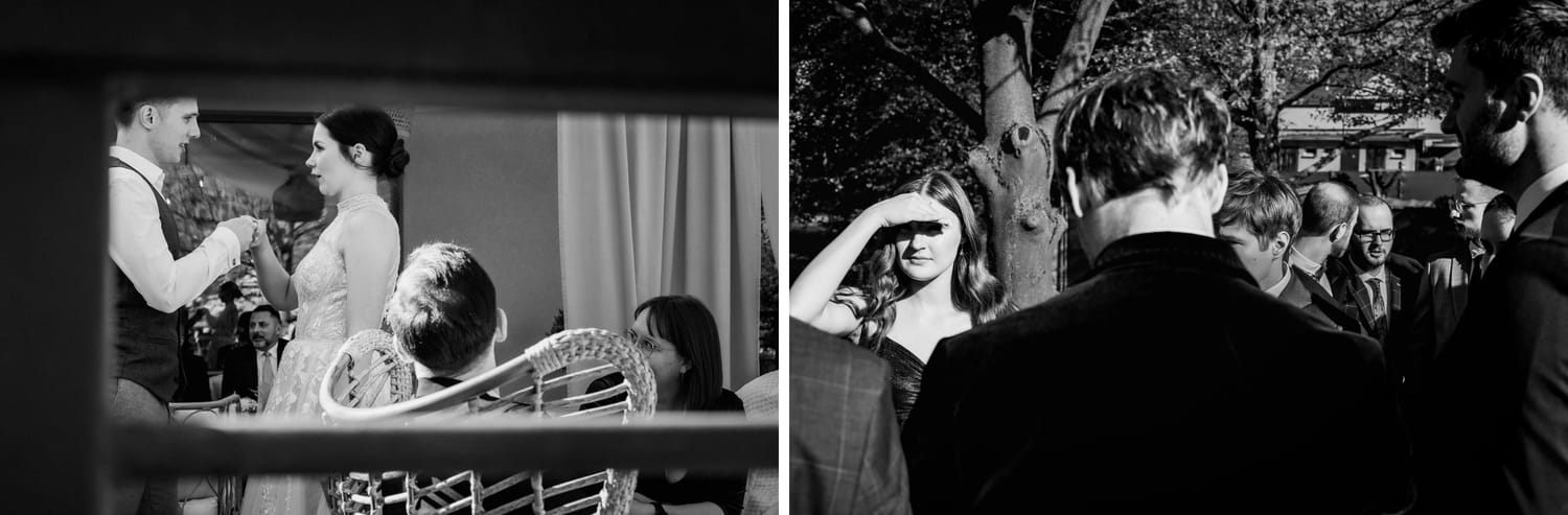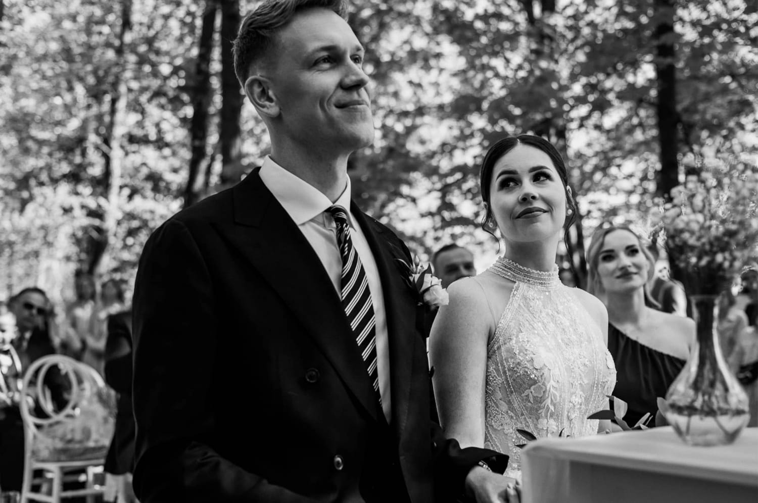 Ja w takich momentach nie szukam „kadrów, które muszą wyjść”. Szukam rzeczy, które są prawdziwe i które potem mają wagę: ręce, spojrzenia, krótkie pauzy w rozmowie. Bo dzień ślubu jest pełen mikrosekund, które znikają w sekundę — i właśnie z nich robi się historia.