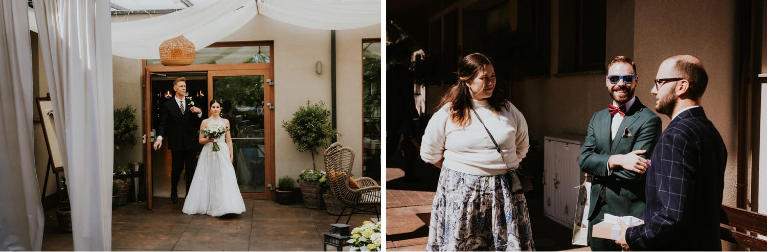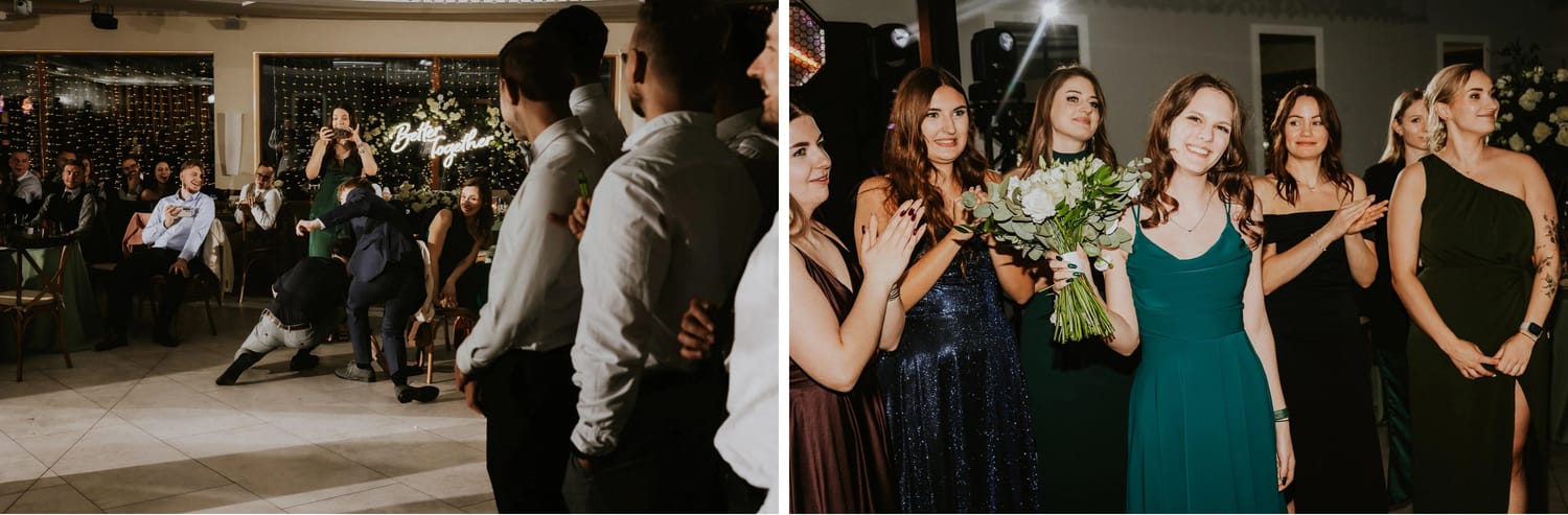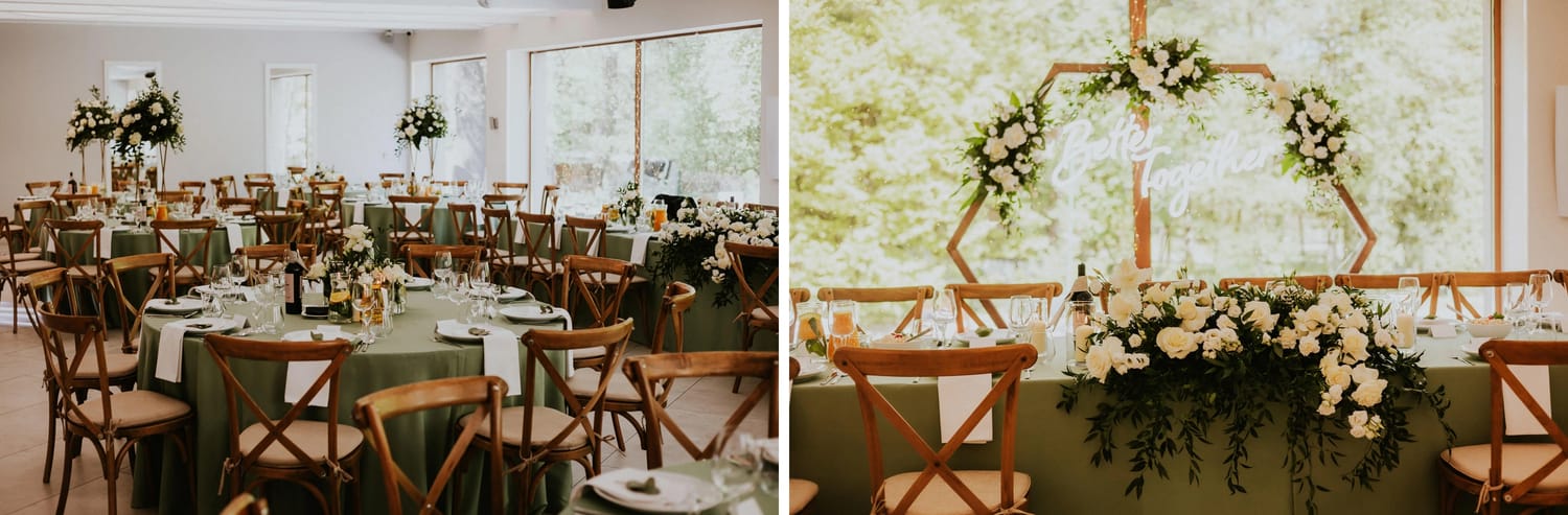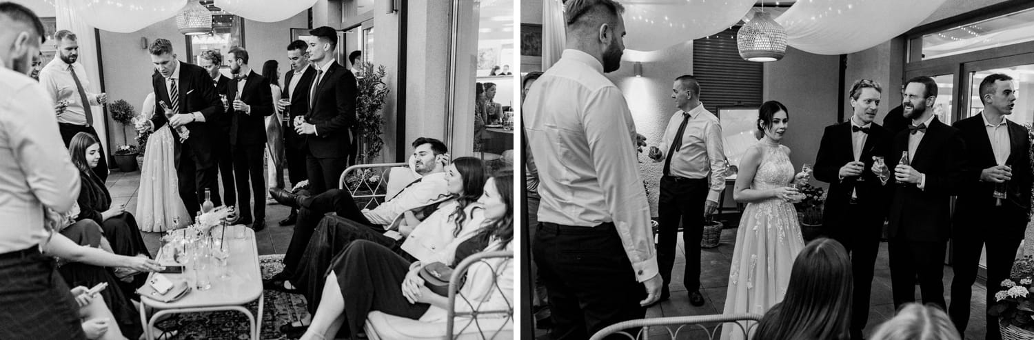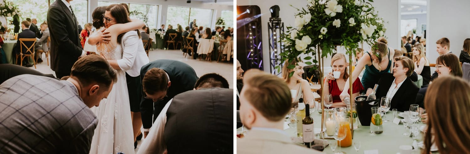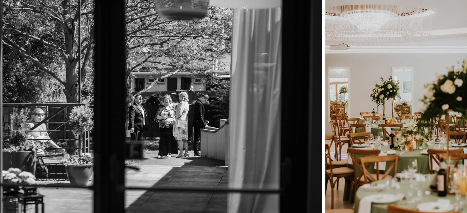 Po plenerze przejście na salę jest szybkie. I to jest ten moment, w którym czuć przewagę takiego dnia: nie ma rozjazdu energii. Goście nie „resetują się” w drodze. Nie znikają. Po prostu płynnie wchodzą w kolejny etap.