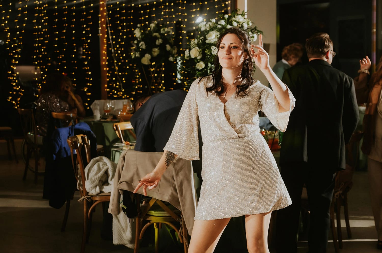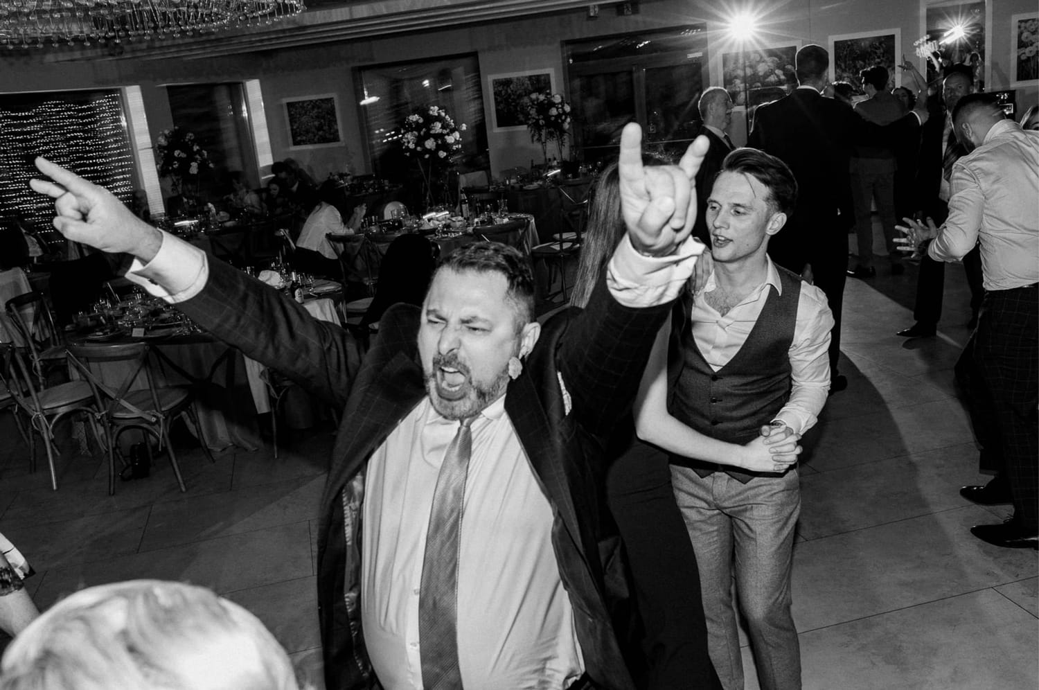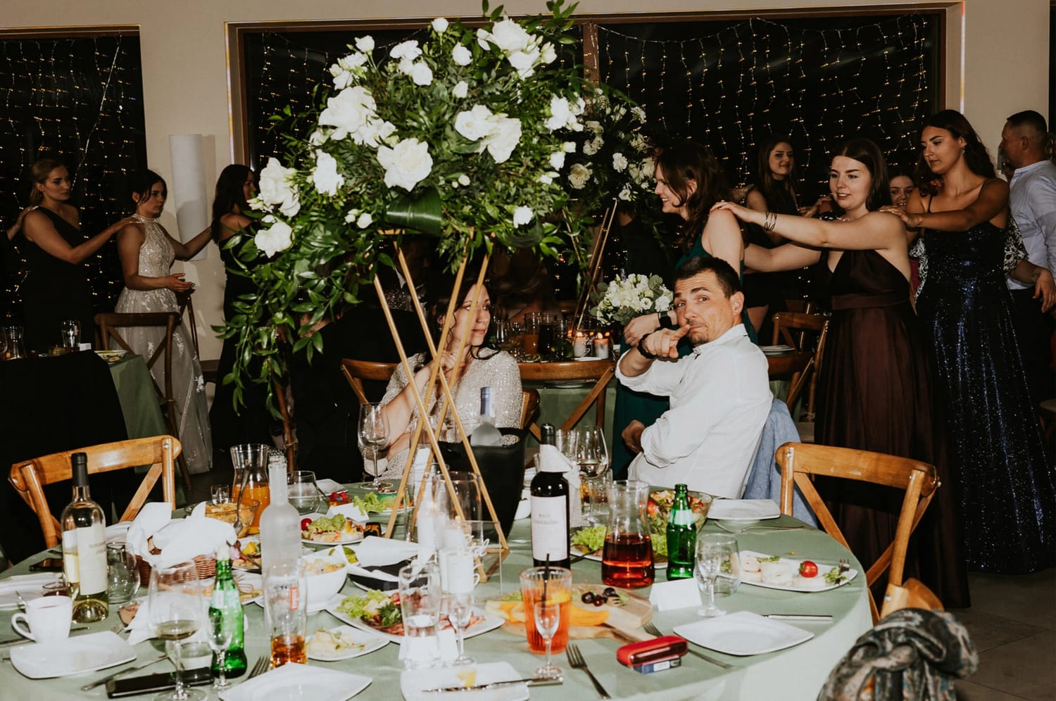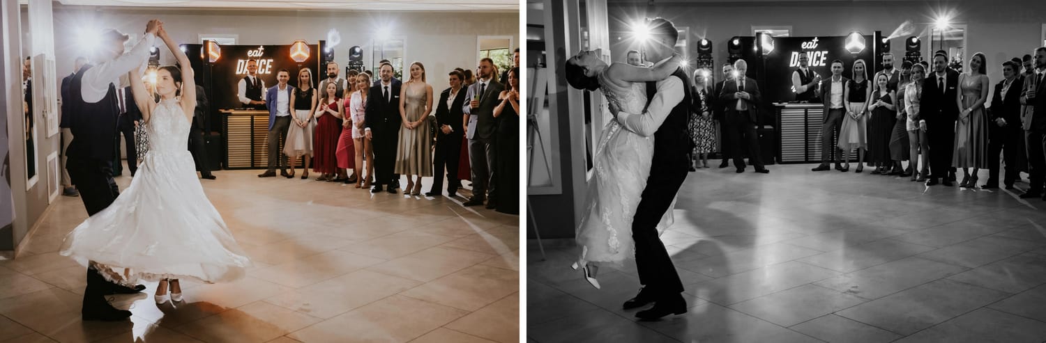 Po plenerze przejście na salę jest szybkie. I to jest ten moment, w którym czuć przewagę takiego dnia: nie ma rozjazdu energii. Goście nie „resetują się” w drodze. Nie znikają. Po prostu płynnie wchodzą w kolejny etap.
