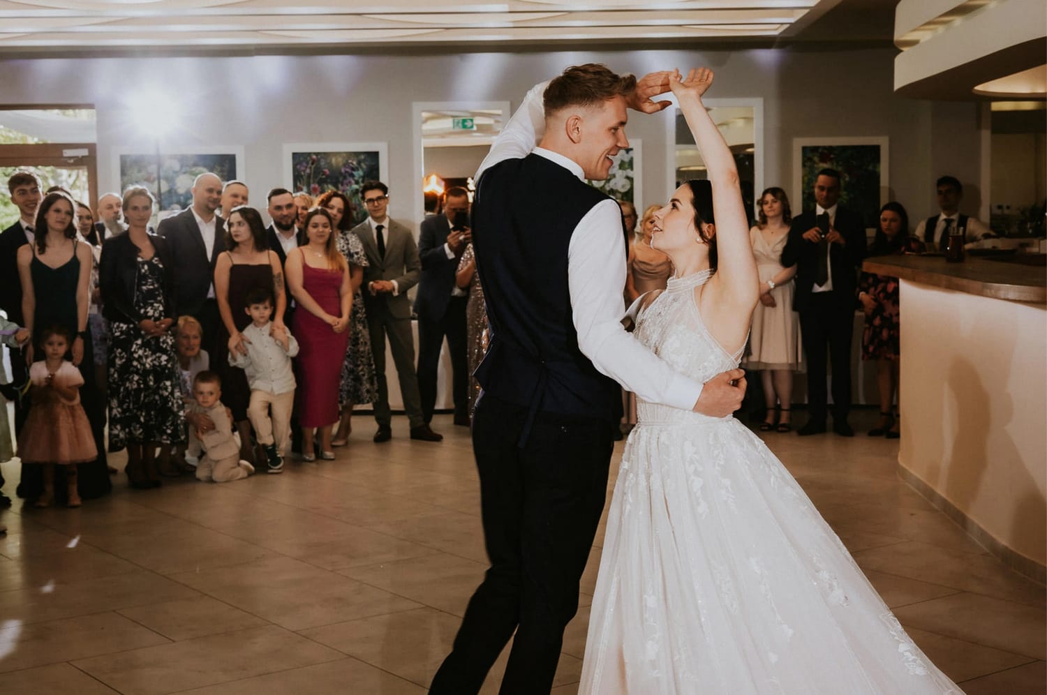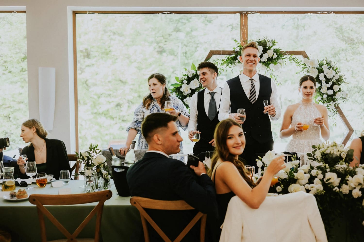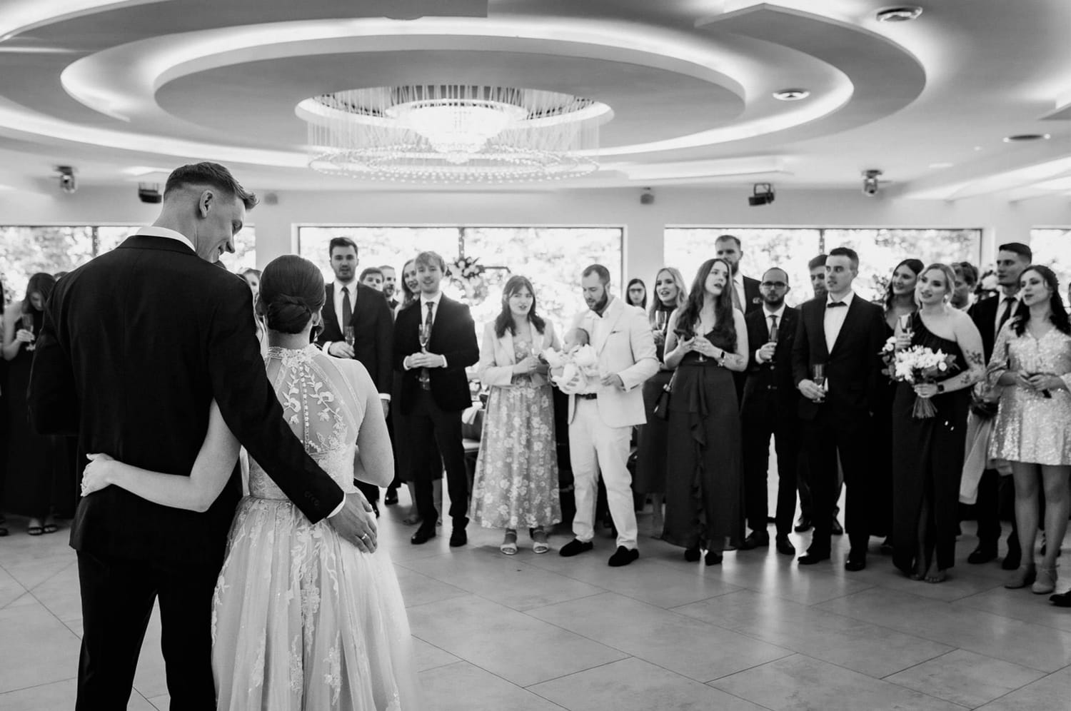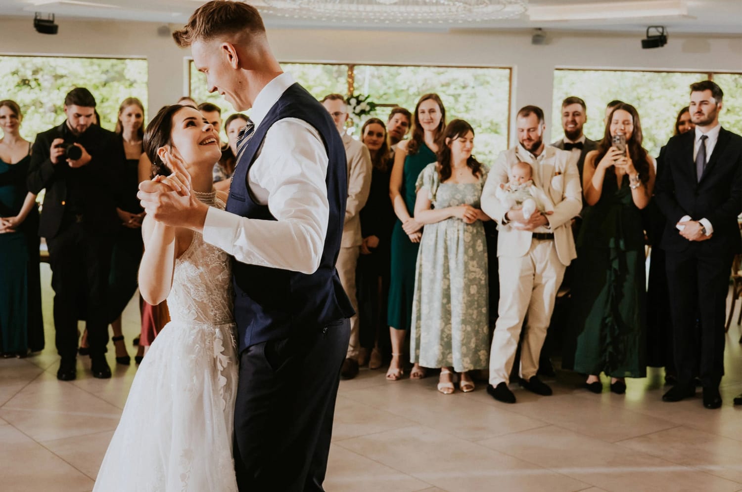 Po plenerze przejście na salę jest szybkie. I to jest ten moment, w którym czuć przewagę takiego dnia: nie ma rozjazdu energii. Goście nie „resetują się” w drodze. Nie znikają. Po prostu płynnie wchodzą w kolejny etap.