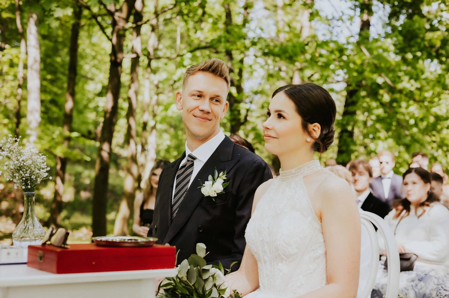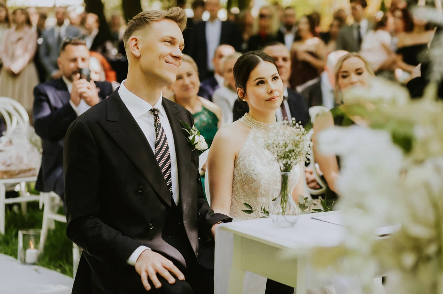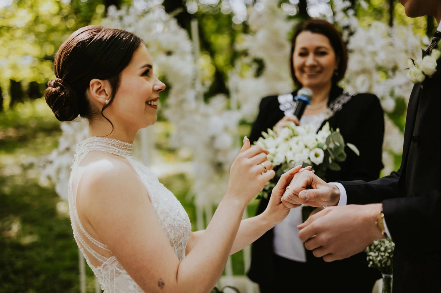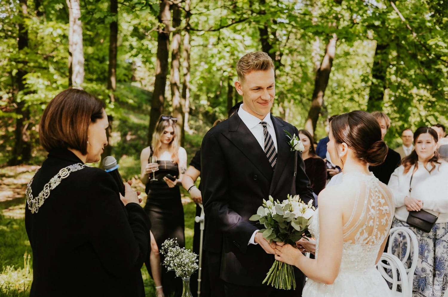 Plenerowy cywilny ma w sobie coś, co bardzo lubię: widać ludzi. W urzędzie wszystko jest „na szybko” i „na równo”. W plenerze jest przestrzeń. Goście widzą, słyszą, reagują. Pojawiają się uśmiechy, ściski dłoni, ten jeden wzrok rzucony w bok, który mówi więcej niż sto słów.