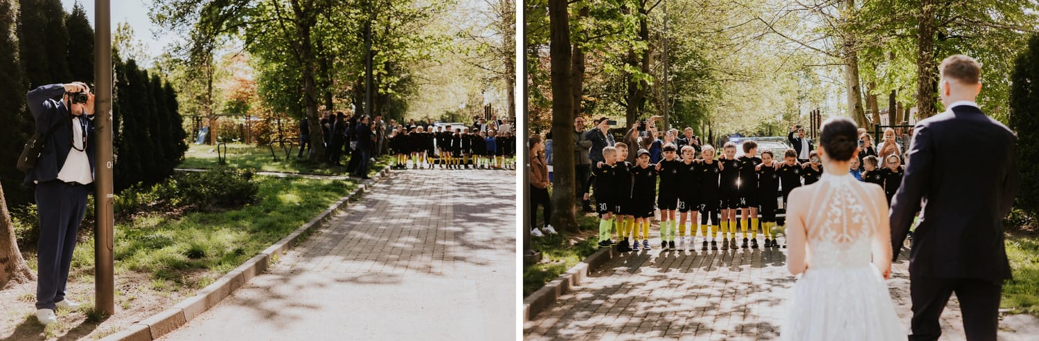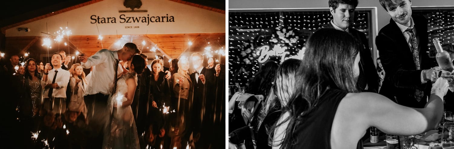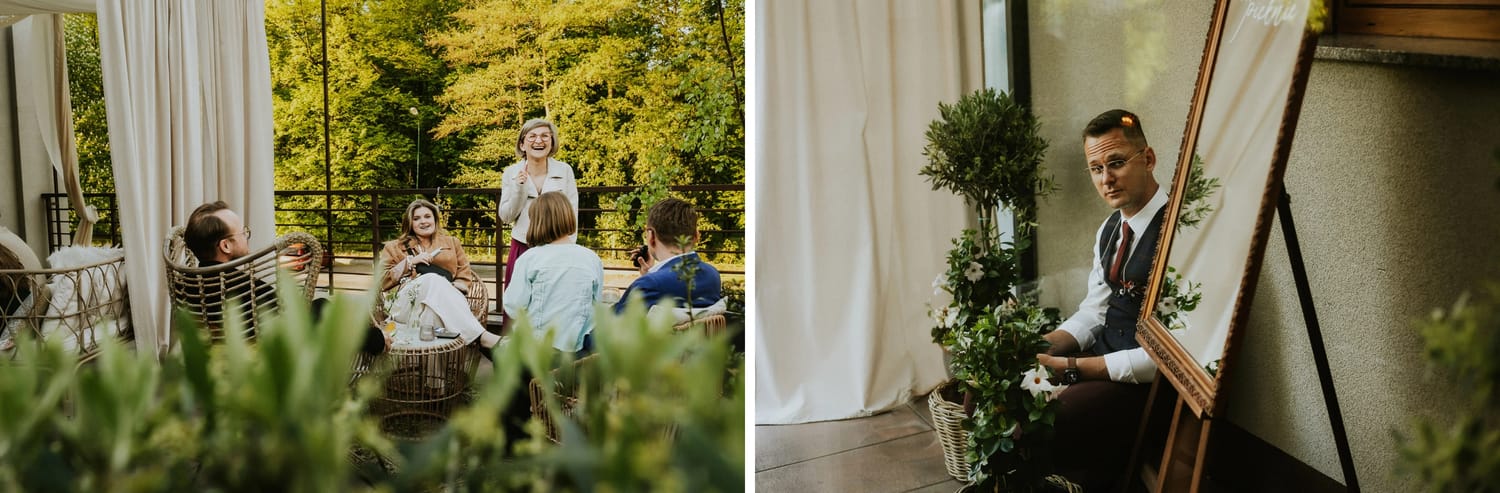 Lubię takie układy. Nie dlatego, że „łatwiej”. Tylko dlatego, że mają sens. Park jest obok restauracji, więc dzień nie rozrywa się na kawałki. Nie ma uciekania w samochody, nie ma znikania gości, nie ma tego momentu, kiedy wszyscy są niby na weselu, ale tak naprawdę są w drodze. Dzięki temu reportaż jest spójny: od przygotowań, przez ceremonię, po imprezę.