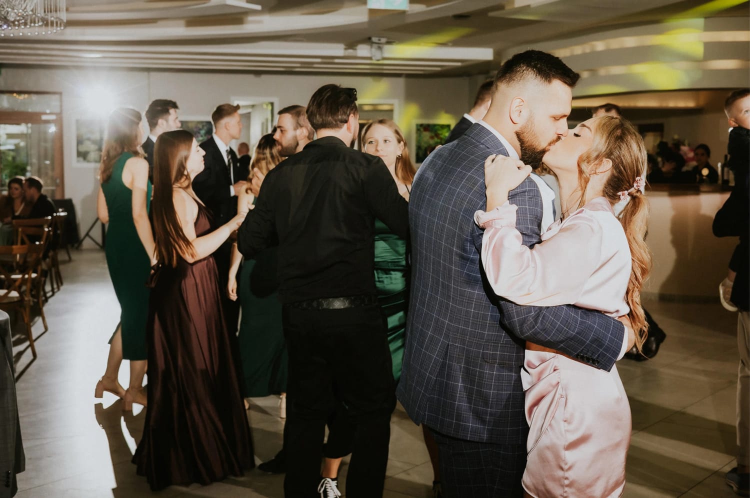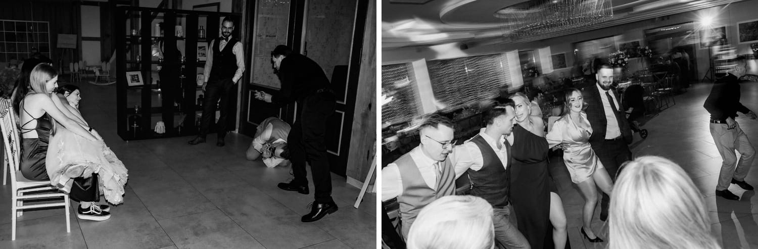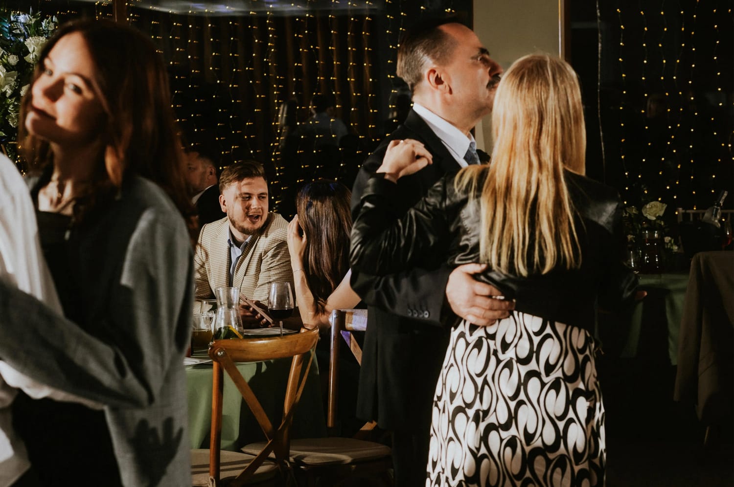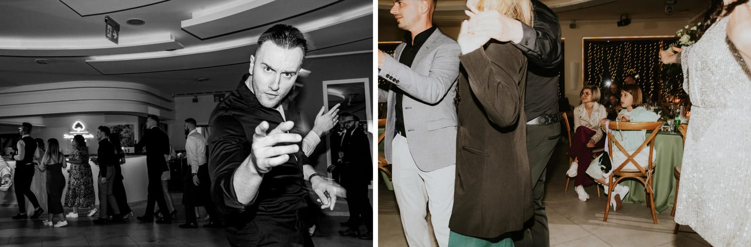 Wesele prowadził DJ Szanowny. Ja nie opisuję DJ-ów jak recenzent w Google, ale jedno powiem wprost: kiedy prowadzenie ma wyczucie, zdjęcia wychodzą lepiej. Bo ludzie nie są ciągle wybijani z rytmu. Impreza żyje, rozmowy przy stołach też żyją, a ja mogę łapać to, co najciekawsze: reakcje, gesty, krótkie spotkania przy barze, śmiech, który wybucha nagle i wcale nie na środku parkietu.