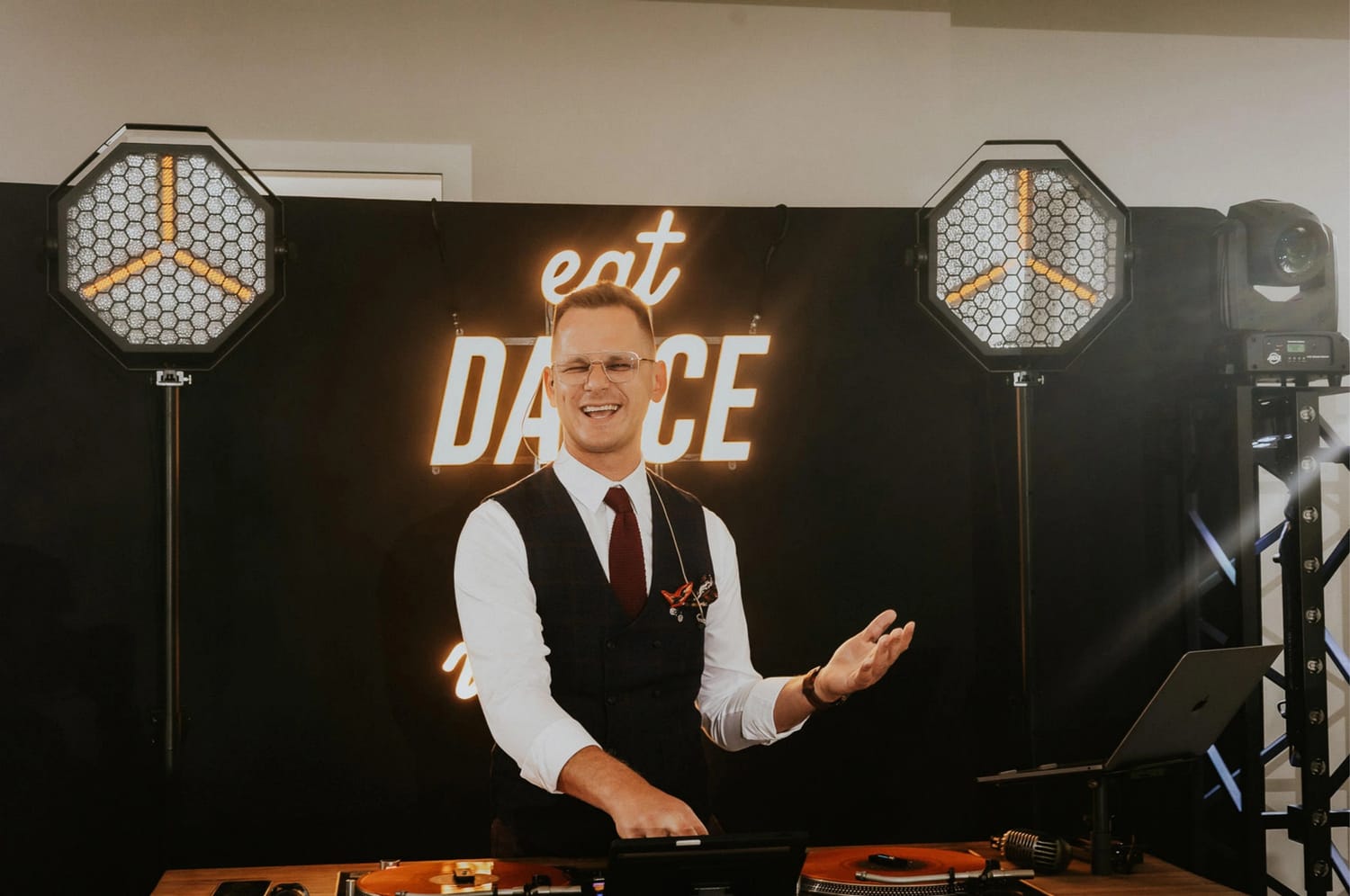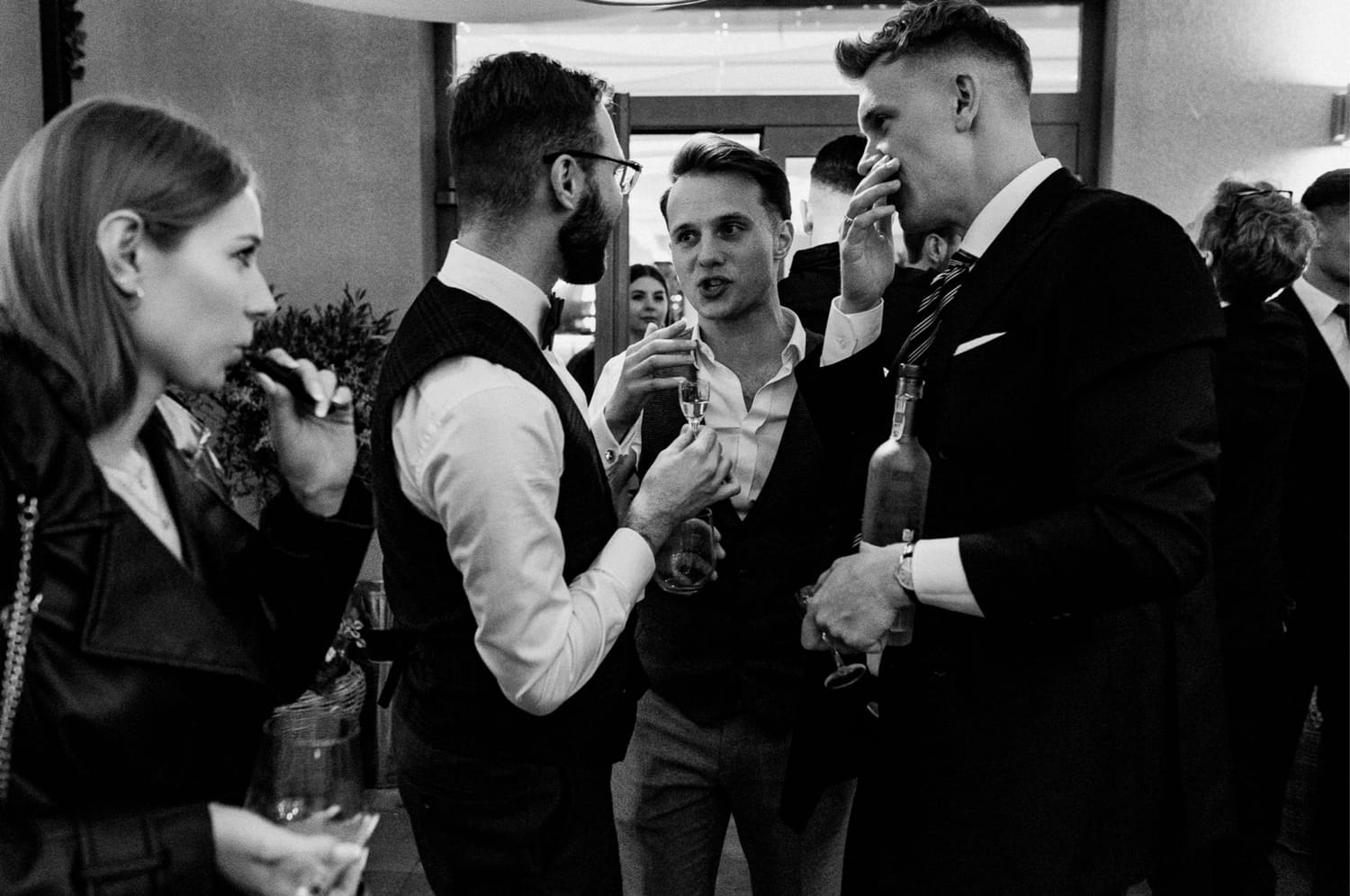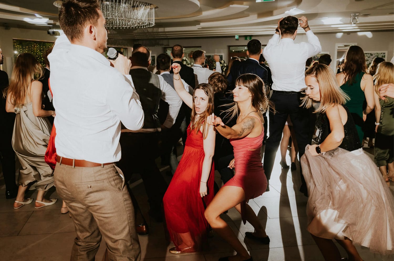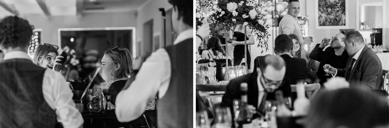 Wesele prowadził DJ Szanowny. Ja nie opisuję DJ-ów jak recenzent w Google, ale jedno powiem wprost: kiedy prowadzenie ma wyczucie, zdjęcia wychodzą lepiej. Bo ludzie nie są ciągle wybijani z rytmu. Impreza żyje, rozmowy przy stołach też żyją, a ja mogę łapać to, co najciekawsze: reakcje, gesty, krótkie spotkania przy barze, śmiech, który wybucha nagle i wcale nie na środku parkietu.